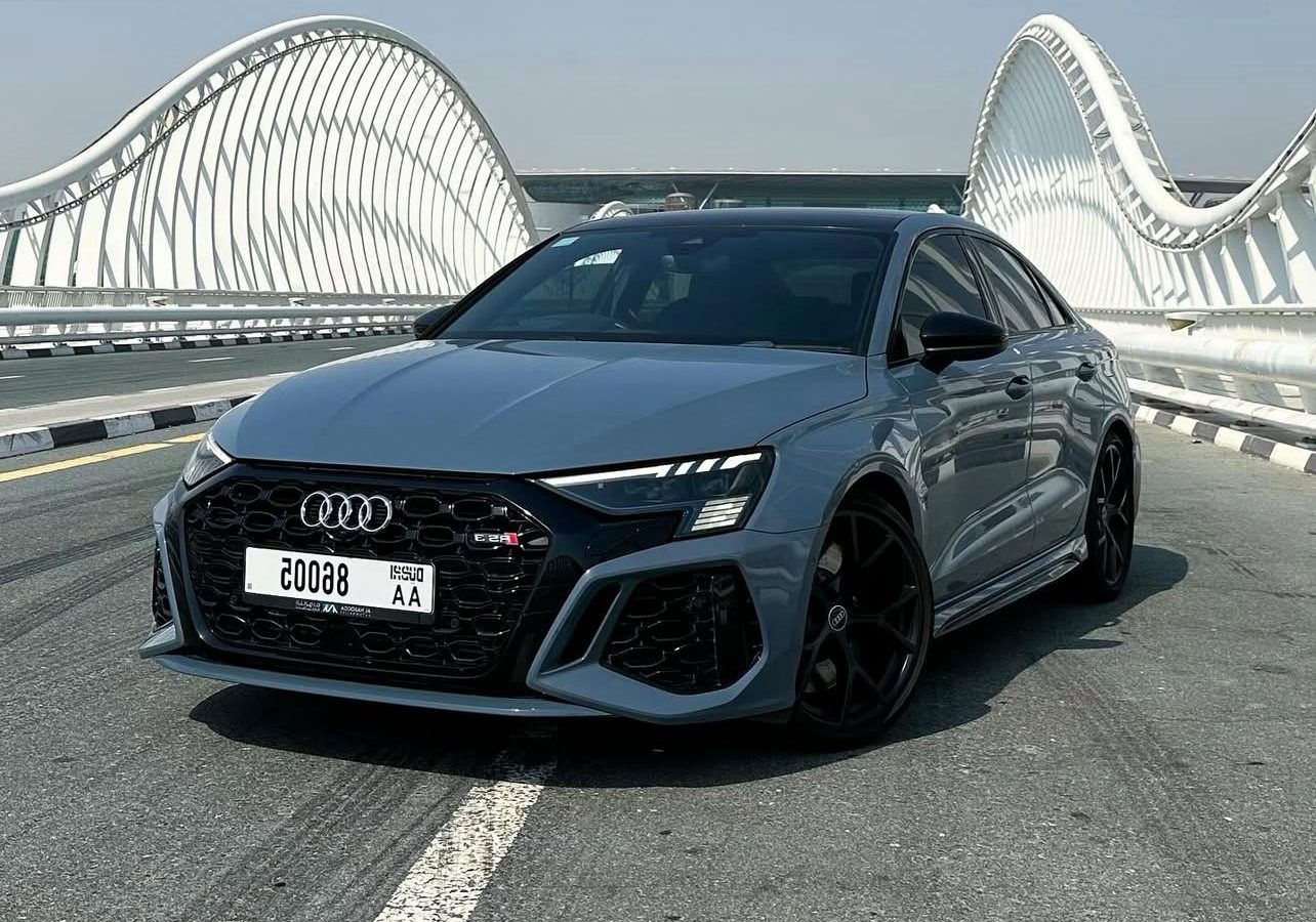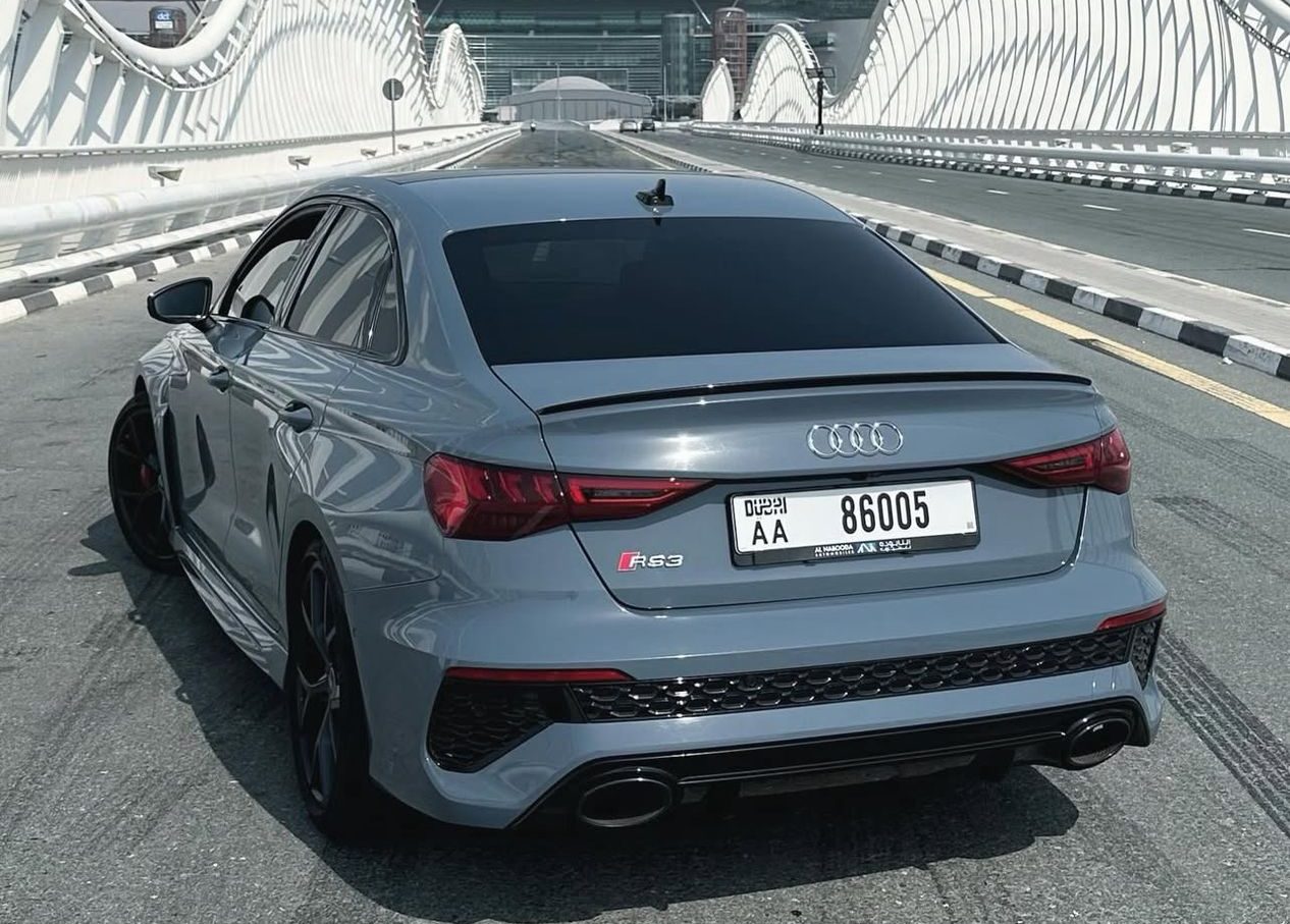 Rent the Audi RS 3 2024 in Dubai and experience a thrilling fusion of high-performance hatchback agility and premium luxury. Powered by a turbocharged 2.5 L inline‑five engine delivering 401 hp and 369 lb‑ft, this compact powerhouse rockets from 0–60 mph in just about 3.6 seconds, while Audi’s intelligent torque-vectoring Quattro AWD ensures blistering acceleration and sharp grip on all surfaces.